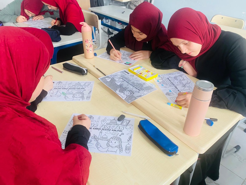 Millî Eğitim Bakanı Yusuf Tekin'in, tüm okullarda öğrencilerin katılımıyla eşzamanlı olarak Filistin ve Gazze temalı farkındalık etkinlikleri düzenleneceğini bildirmesiyle birlikte okulumuzda öğretmen ve öğrencilerimizin katılımıyla birbirinden anlamlı etkinlikler düzenlendi.